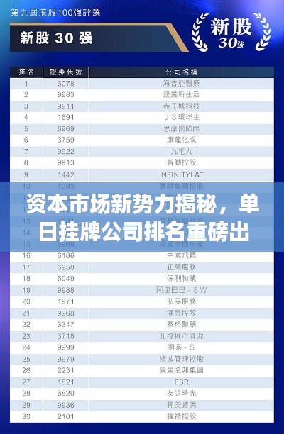在资本市场中,每日都有新的动态和变化,单日挂牌公司的排名无疑是一个引人瞩目的焦点,本文将深入探讨单日挂牌公司的概念,排名的影响因素,以及最新的排名情况,以期为读者揭示资本市场的新势力。